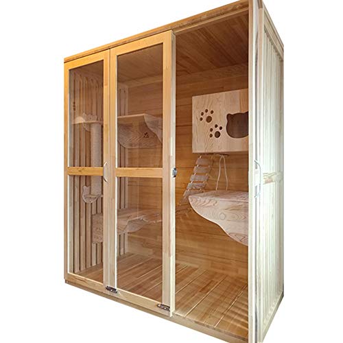 Soñadora domicilio: La percha acolchada superior es una suite espaciosa, la parte inferior es su patio de recreo feliz, después del almuerzo, que también puede bañarse en el sol, tomar una siesta en la tumbona cesta, o disfrutar de su “tiempo maullido” en la cueva privadade la torre de gato.